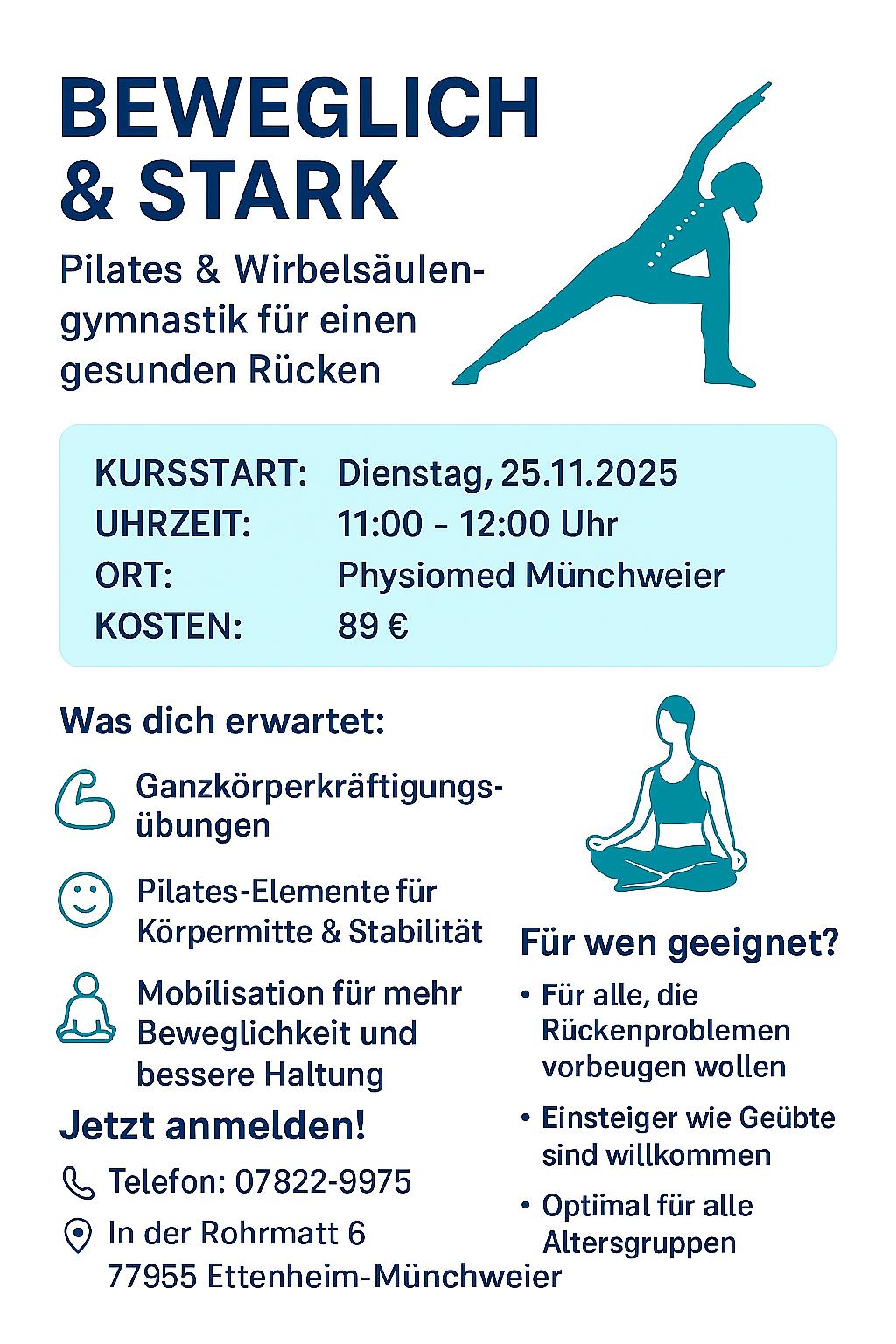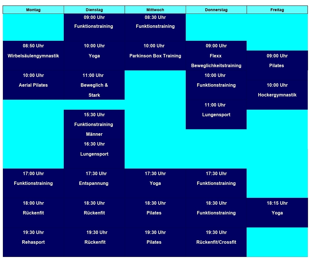 Kursgebühr: Präventionskurse 89 Euro ; Funktionstraining 18 Euro/monatlich